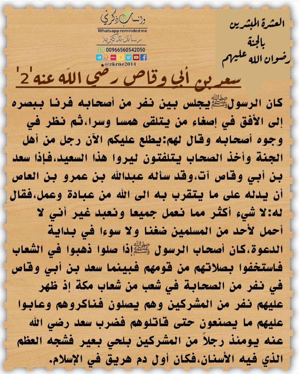 سعد بن أبي وقاص موقع البطاقة الدعوي