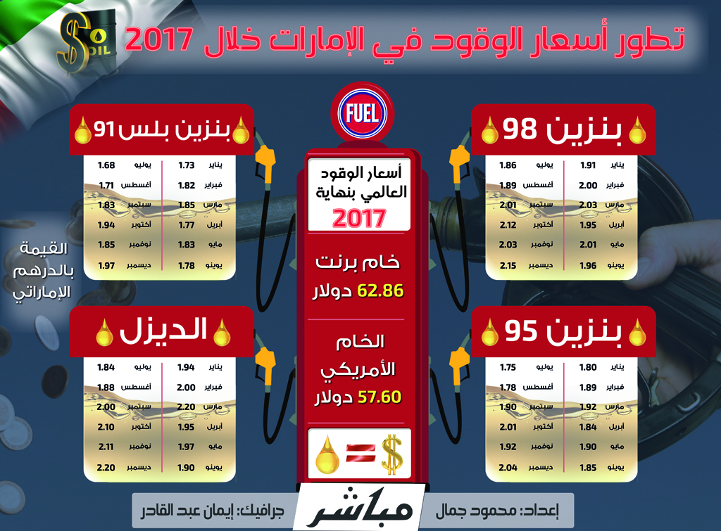 إنفوجراف تطور أسعار الوقود في الإمارات 2017 معلومات مباشر