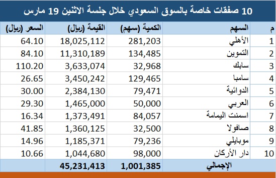 محدث 10 صفقات خاصة بالسوق السعودي قيمتها 45 مليون ريال معلومات مباشر