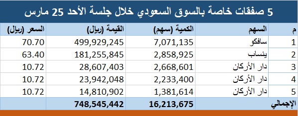 5 صفقات خاصة بالسوق السعودي أكبرها على سافكو معلومات مباشر